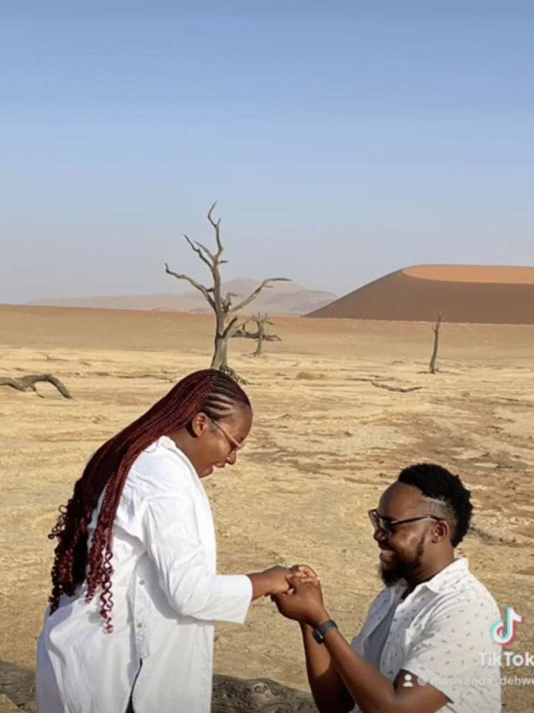 Fast forward to 27 November 2022: in the middle of the Namib Desert’s Deadvlei, Thabani went down on one knee — far from any sign of humanity, so Bevlyn had no choice but to say “YES!!!” A few months later, on 9 April 2023, the cows came home to the Paradzas for their traditional wedding. They were so happy, they even made it official at the Magistrate Court — and now, here they are, ready to celebrate again as they become The N3s!